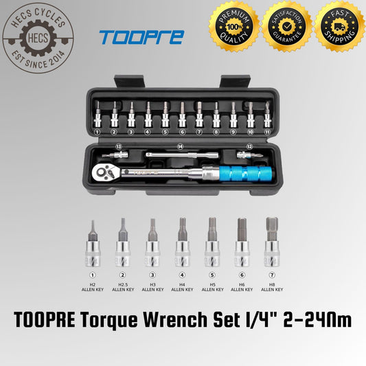 TOOPRE Torque Wrench Set 1/4" 2-24Nm Bike Maintenance Tool with Allen, Torx & Screwdriver Bits