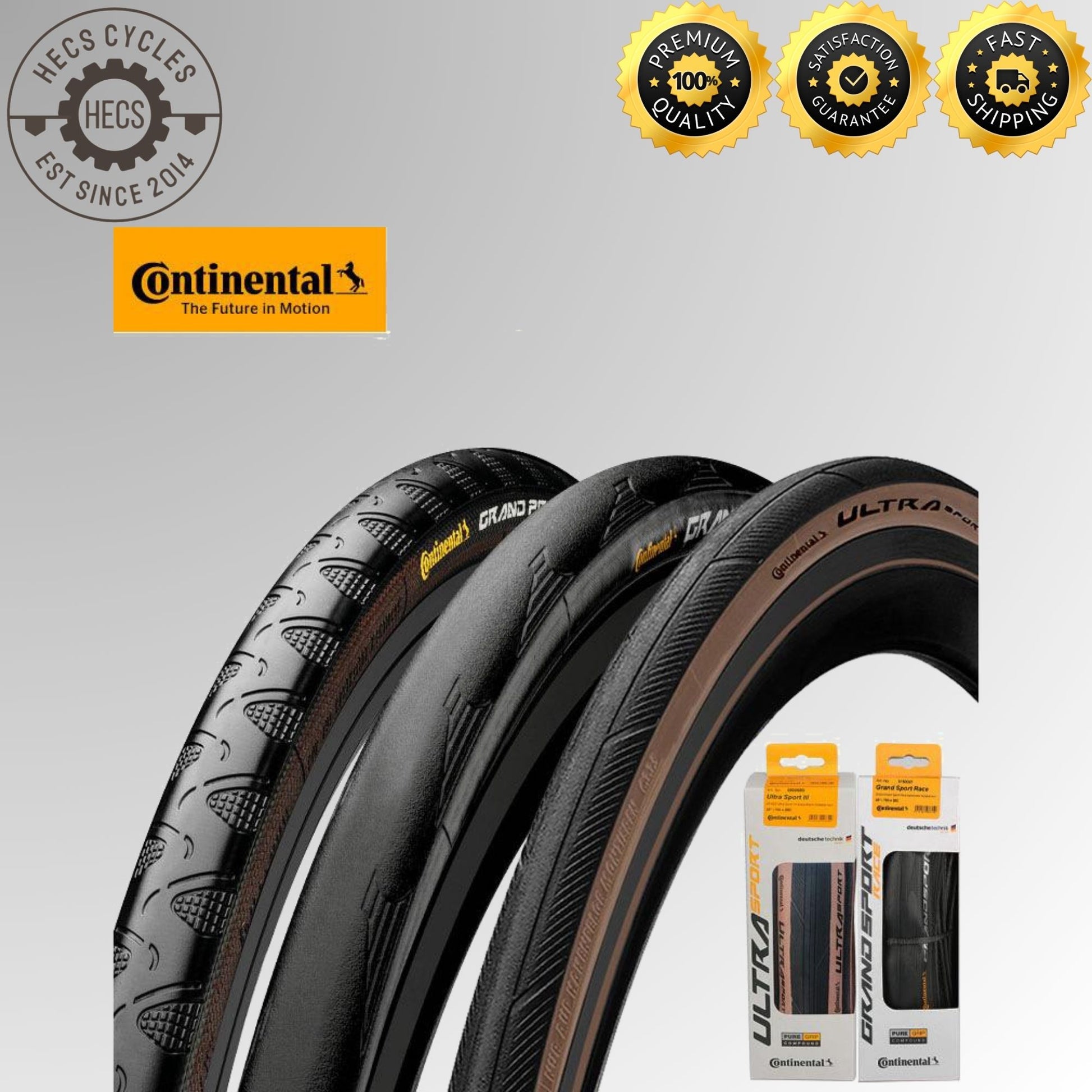 Continental Ultra Sport III road bike tyre with PureGrip Compound for superior grip, durability, and performance. Ideal for training or daily rides, available in 700x25C and 700x28C, boxed (yellow logo) or bulk (white logo) options.