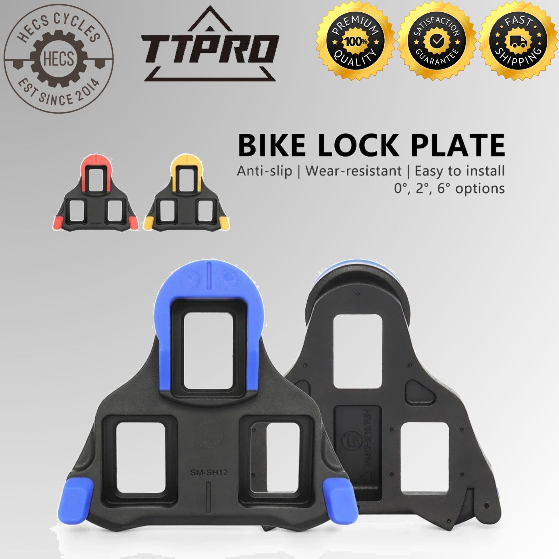 TTPRO SPD-SL Road Bike Cleats offer a secure, smooth, and efficient pedalling experience. Made from durable composite materials, they feature anti-slip stability, 3 float options (0°, 2°, 6°), and a reliable 3-hole mounting system. Lightweight at just 43 g per pair, compatible with Shimano SPD-SL pedals, perfect for road cyclists.